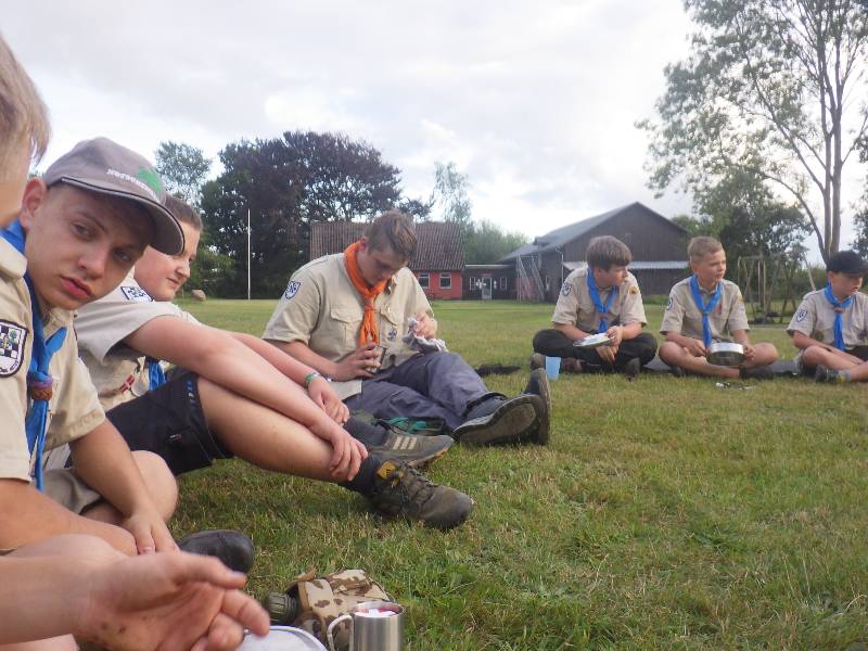 Samstag, den 14.08.21 wachten wir früh auf. Müde packten wir schon zusammen, andere noch nicht. Dann gab es Frühstück. Es gab Brot mit Marmelade. Danach haben alle zusammen gepackt und sind dann noch 3 km zu den Bussen gelaufen. Danach haben wir die Busse beladen und sind losgefahren. Später sind wir 18 km zu einem Autofriedhof gefahren, haben uns umgeschaut und sind dann wieder zurückgelaufen. Wir sind dann zum (Corona-)Testen am Hafen gefahren. Wir haben dann einen Schlafplatz gesucht und sind dabei an einem Flughafen vorbei gefahren. Dann waren wir bei einem Waldweg, bei dem wir nicht mehr weiter fahren durften. Also mussten Axel und Stefan laufen. Als die beiden weg waren, ist ein Flugzeug über uns geflogen. Dann sagte Axel, dass wir nicht da schlafen können, weil da schon Leute sind. Deshalb fuhren wir weiter zu einem anderen Shelter. Dann sind Axel und Stefan wieder voraus gelaufen und sagten uns, dass wir unsere Sachen holen können. Dann sind wir in den Wald gelaufen und haben Kerzen angezündet und aufgestellt. Nachher kam der alte Schwede (Stumpf) zu uns und suchte einen von uns mit einem Zeichen auf dem Rücken aus: Es war Jan, der auf „Schmiddi“ getauft wurde. Nun haben wir Abzeichen bekommen. Danach sind wir ins Bett gegangen und haben geschlafen.