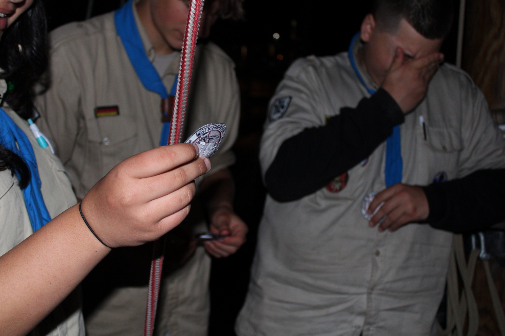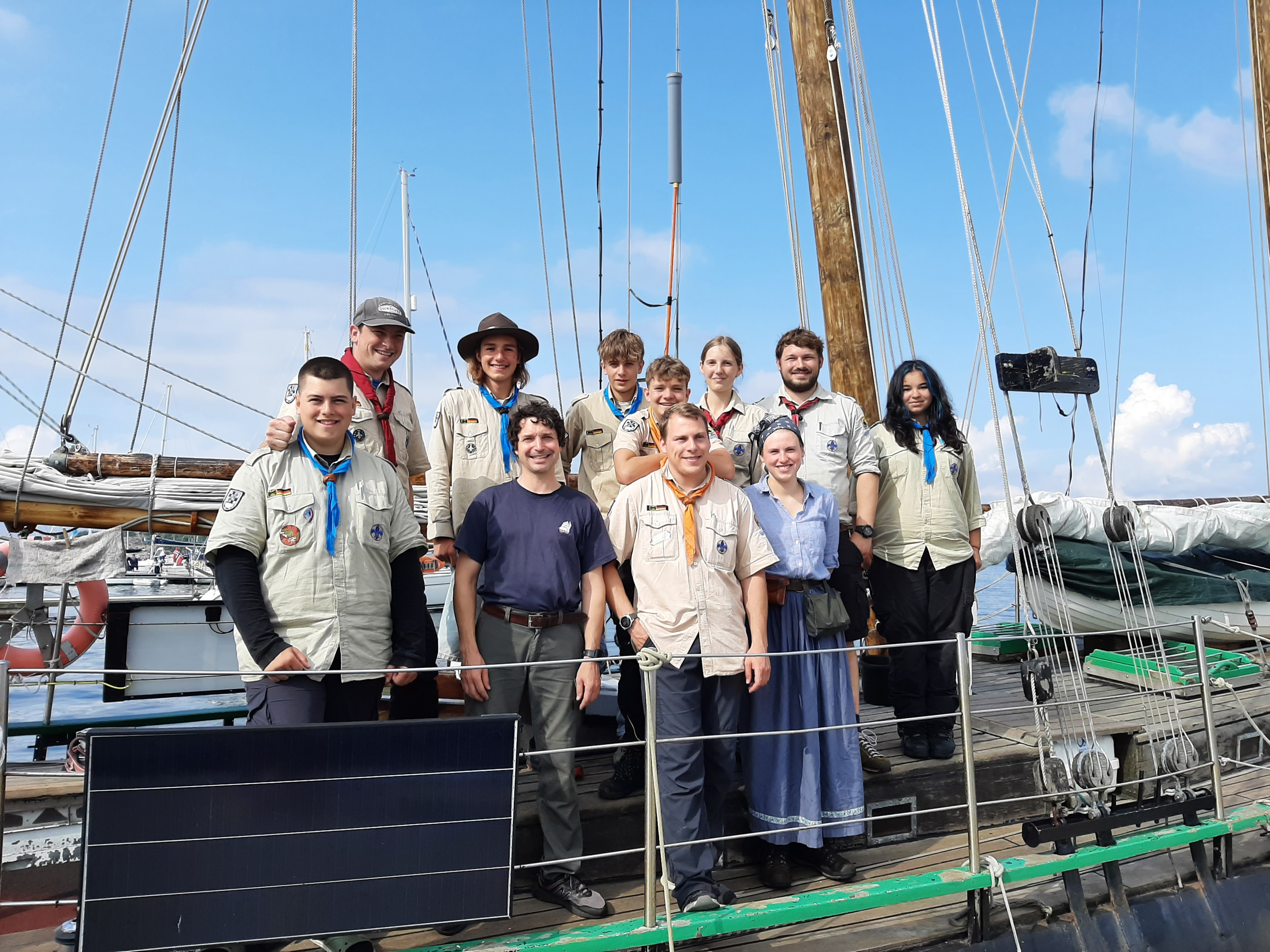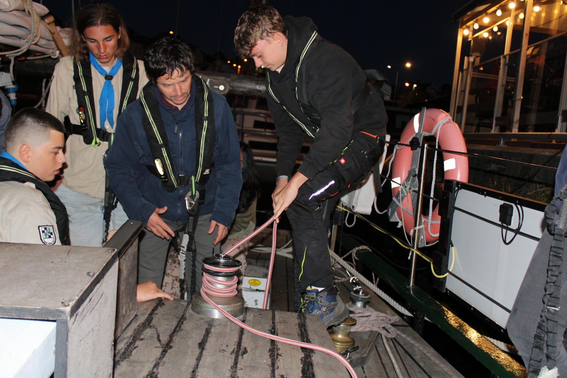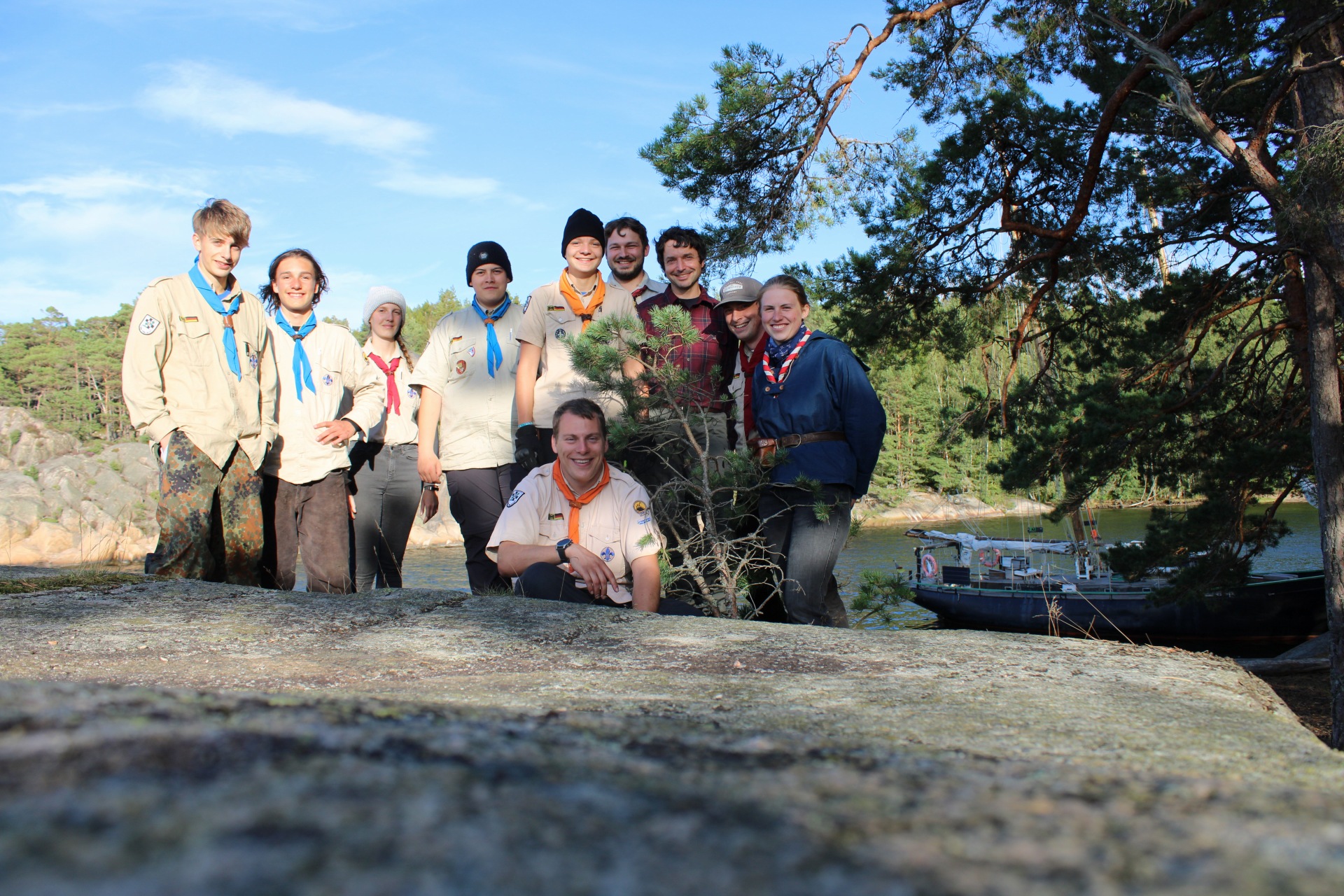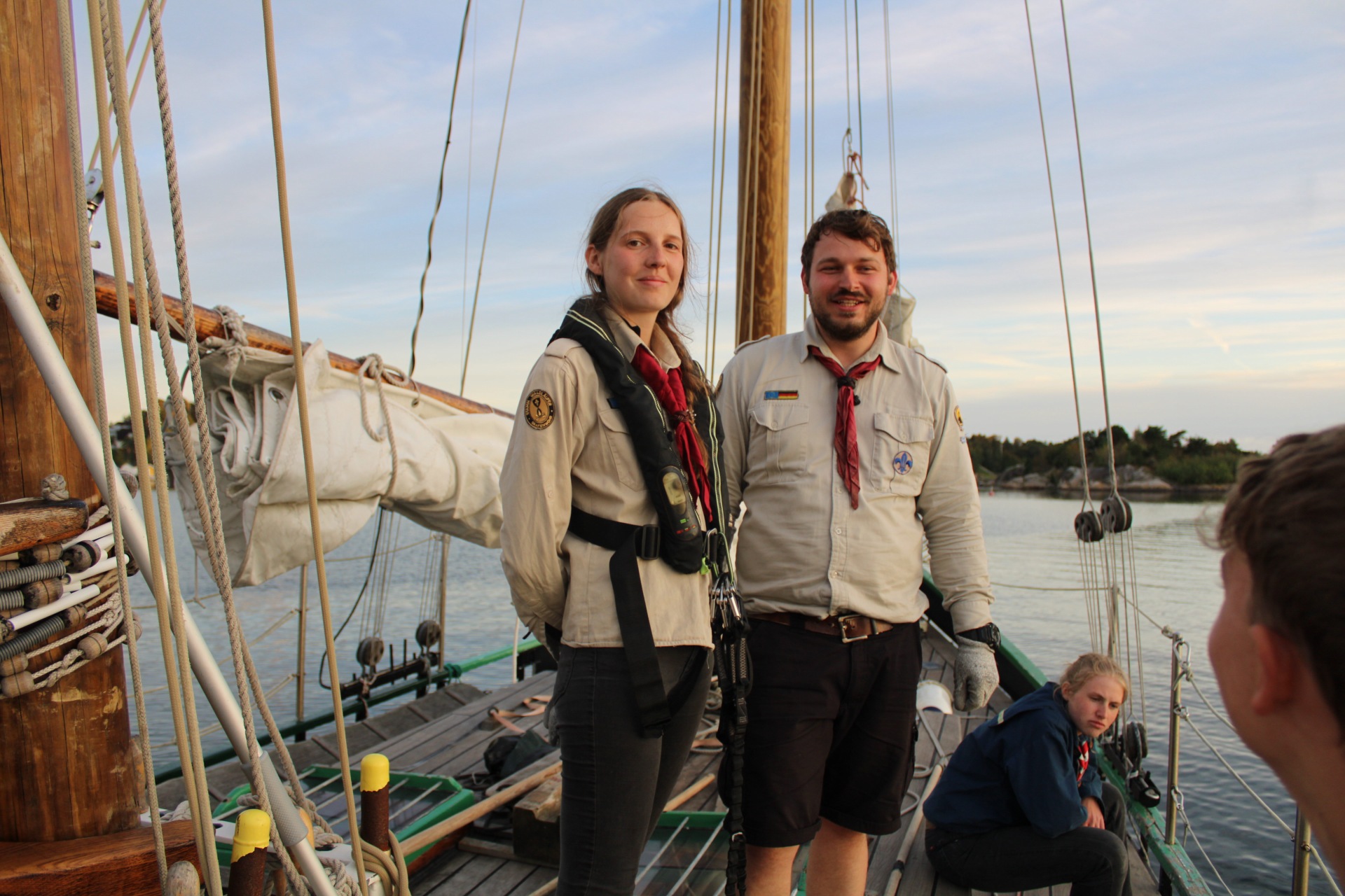 Am Tag darauf war das Wetter wieder wunderschön, jedoch der Wind etwas schwach. Es hieß „Alemann an Deck“ warum war die Frage ? Steff erklärte uns das wir soeben in Norwegische Gewässer gefahren sind und Schweden verlassen haben. Zum Flagge hissen gab es die Norwegische Nationalhymne. So kamen wir schon am Nachmittag in einer Bucht an. Badehosen an war der Befehl natürlich nur wer mochte. Eine geniale Möglichkeit das „Bergedreieck“ mal aus zu probieren. mit dieser Vorrichtung fanden über Bord gegangene Personen (in unserem Fall Pfadfinder) wieder zurück an Bord. Im Ernstfall käme das natürlich auch zum Einsatz.