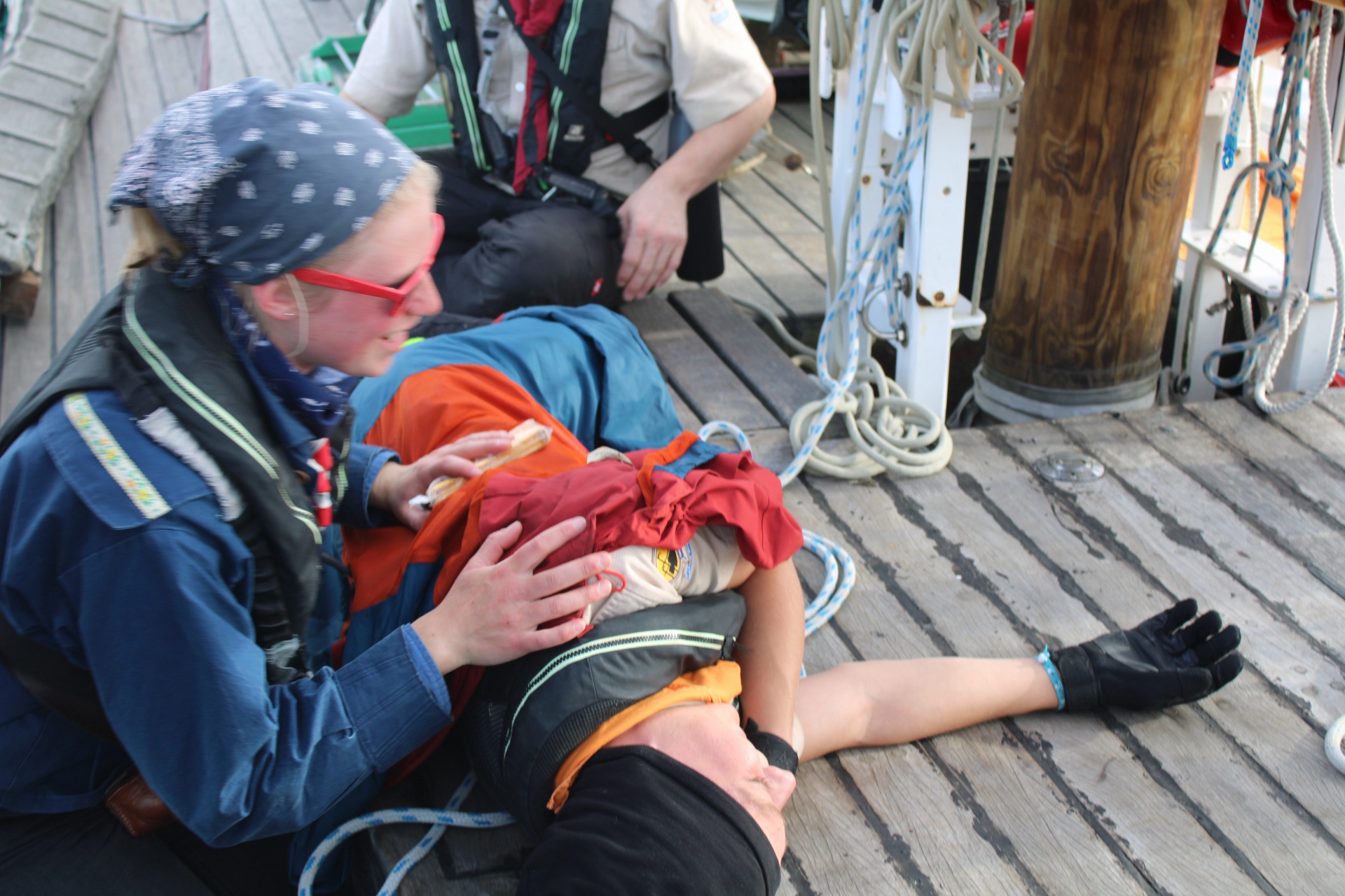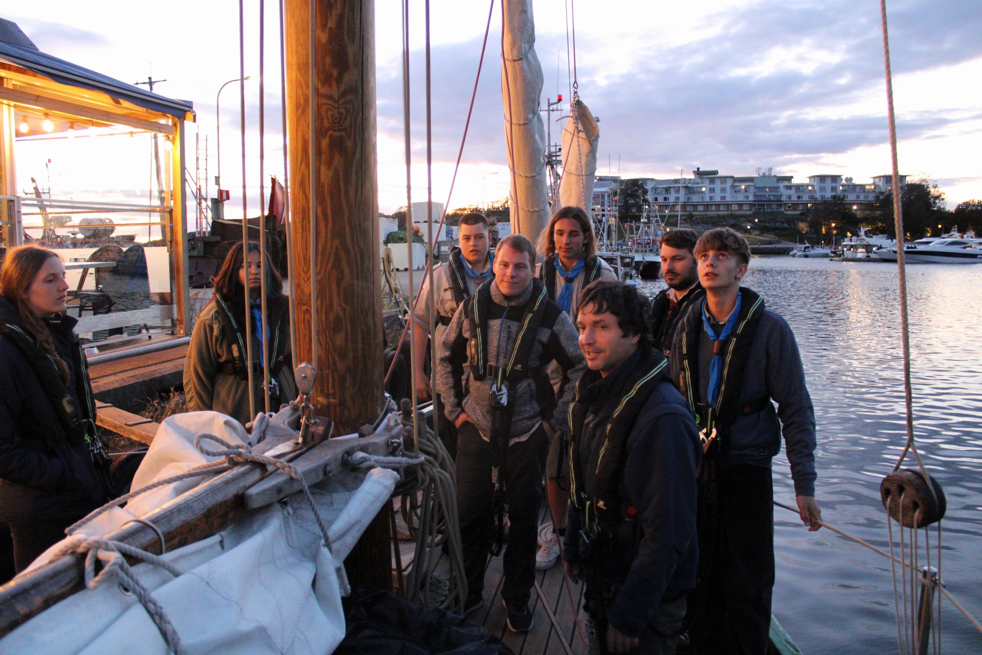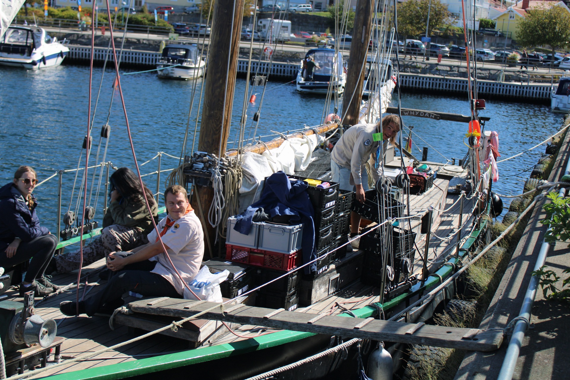 Um 12 Uhr kamen wir pünktlich in Strömstadt an. Gemütlich luden wir unseren Kofferraum aus und schaften die 17 Kisten auf die Whydah, welche friedlich im Wasser lag. Im Anschluss war ein Stadtbummel fällig. Unser Skipper Steff stieß gegen 17 Uhr zu uns. Frisch Kennen gelernt gab es nun eine ausführlich Sicherheitseinweisung.