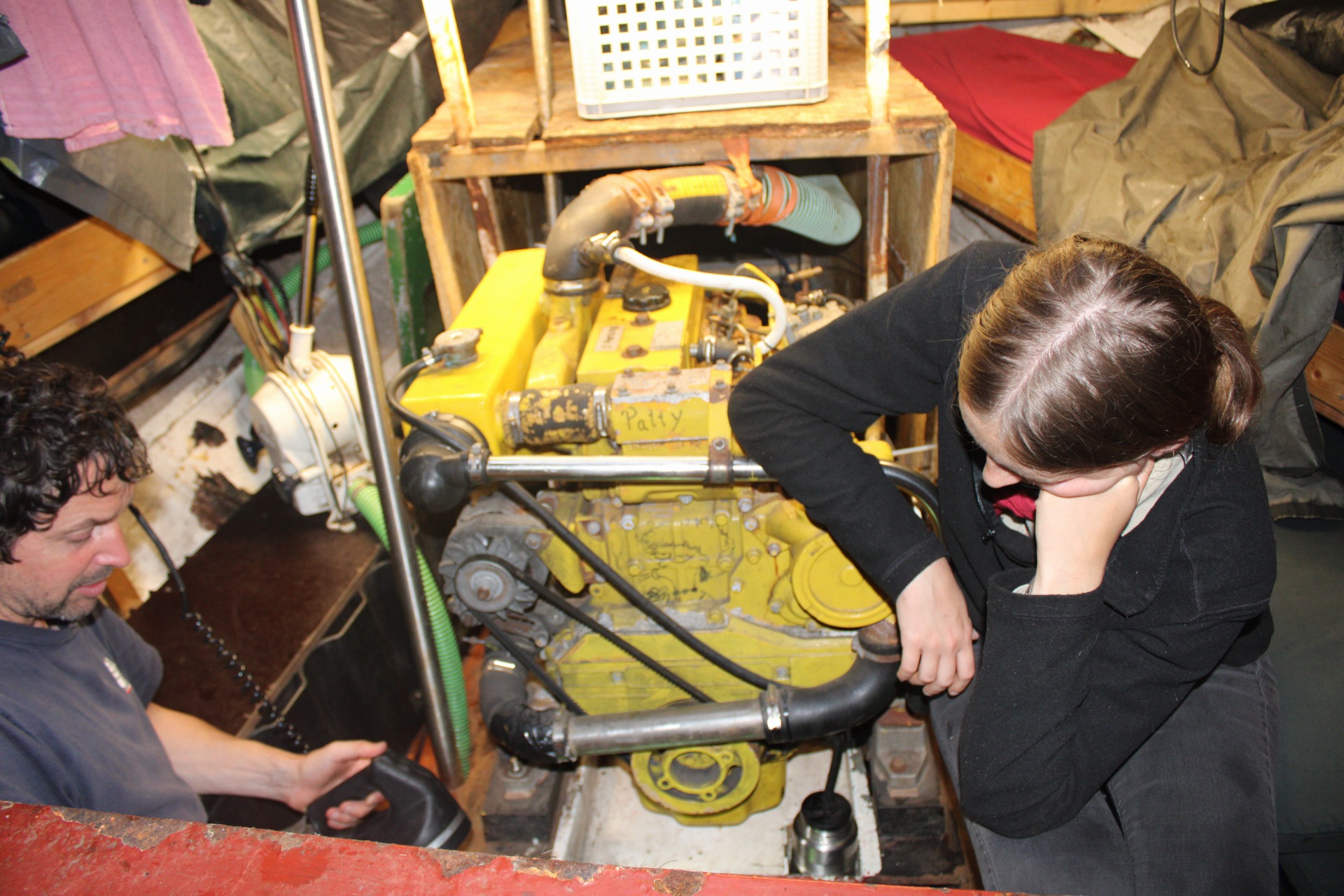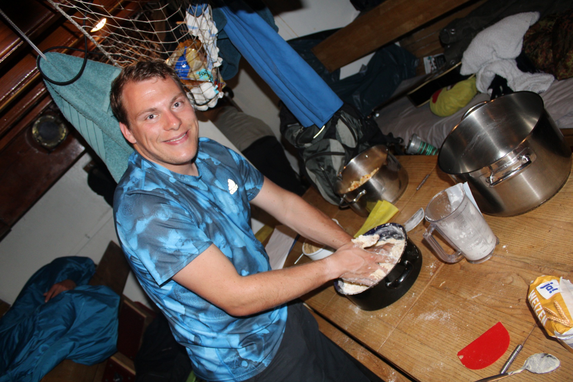 Natürlich gab es auch genügend zu Essen. 320 Eier gingen mit uns an Bord und wollten verarbeitet werden. Vom Rührei über Zwiebelkuchen mit Lauch, Vom Russeneintopf bis hin zu Pizzasemmeln war die Kulinarische Reise schier unendlich. Essen so sagte uns Steff ist wichtig gegen Seekrankheit, so taten wir diese lieber öfter 🙂 Am 3. Abend wollten wir m Hafen anlegen, bekamen jedoch keinen Platz so Ankerten wir in der Nähe. Das Schiff konnten wir nur mit unserem Beiboot verlassen das auf Handbetrieb eingestellt war.
