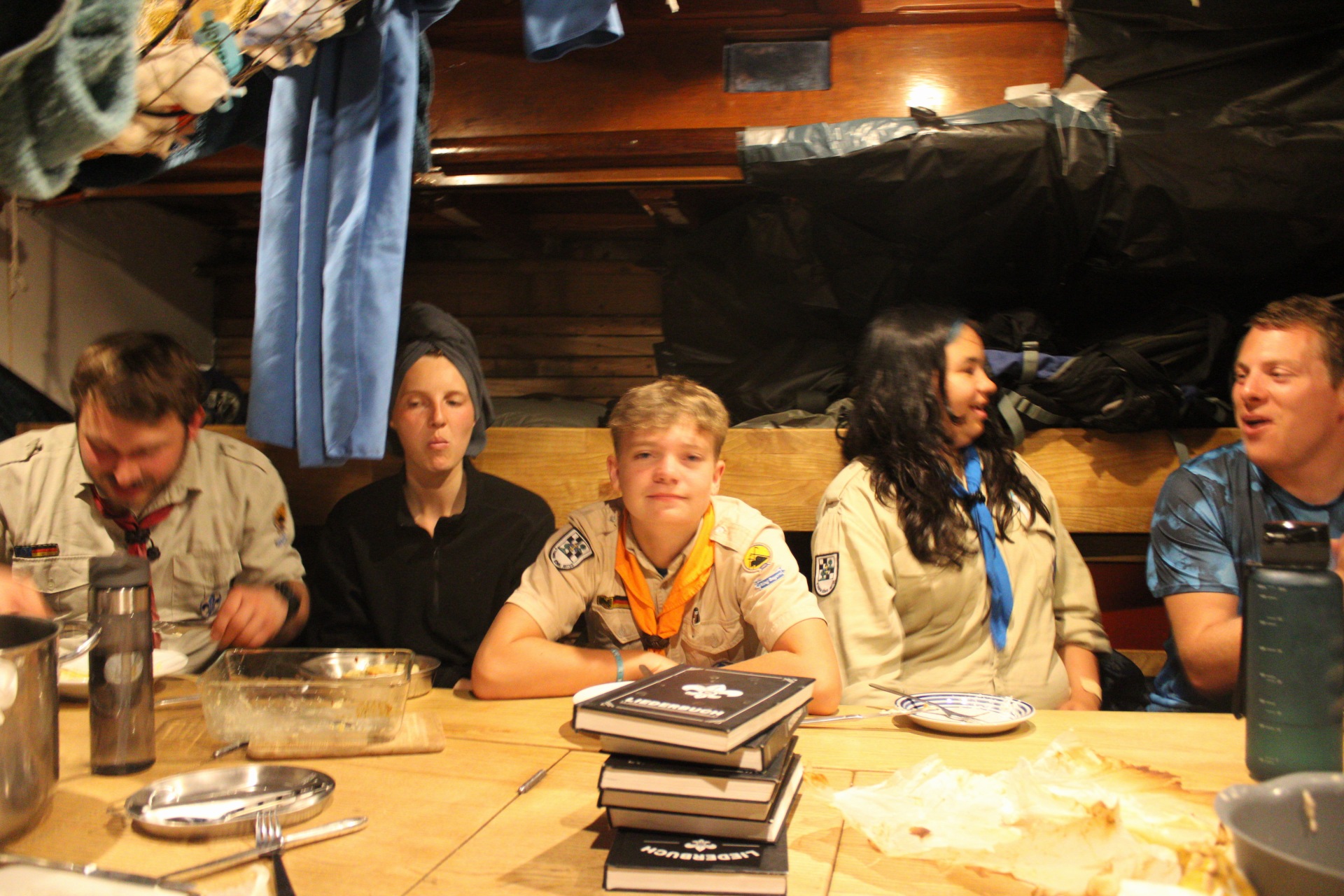 Am morgen war die Windvorhersage eher schlecht als recht. Daher übten wir das an und ablegen des Schiffes. Hier durften unsere Gruppenführer im Wechsel das Steuer übernehmen. Unter Anleitung von Skipper Steff schaffte es jede ohne die Müllinsel zu berühren. Ein superschönes Gefühl. Auf dem offenen Meer angekommen war fast Flaute. Wenig Wind wir hissten zwar Segel aber die Strömung trieb uns eher Rückwärts wie vorwärts. So warfen wir den Schiffsmotor (Patty) an und übten das BOB-Manöver (Boje über Bord) unter Motor auch der Mastbruch wurde geübt hier hatte ich jemand am Kopf verletzt. Manöver beendet zur nächsten Bucht. Hier waren wir nicht allein, bei einem Besucherzentrum eines Nationalparks und einen Jugendzeltplatz zogen wir 150 Augen auf uns. Erneut gingen wir mit Beiboot an Land aber der Sonnenuntergang war herrlich. Ob die am Zeltplatz auch Bagges mit Stampf gegessen haben ?