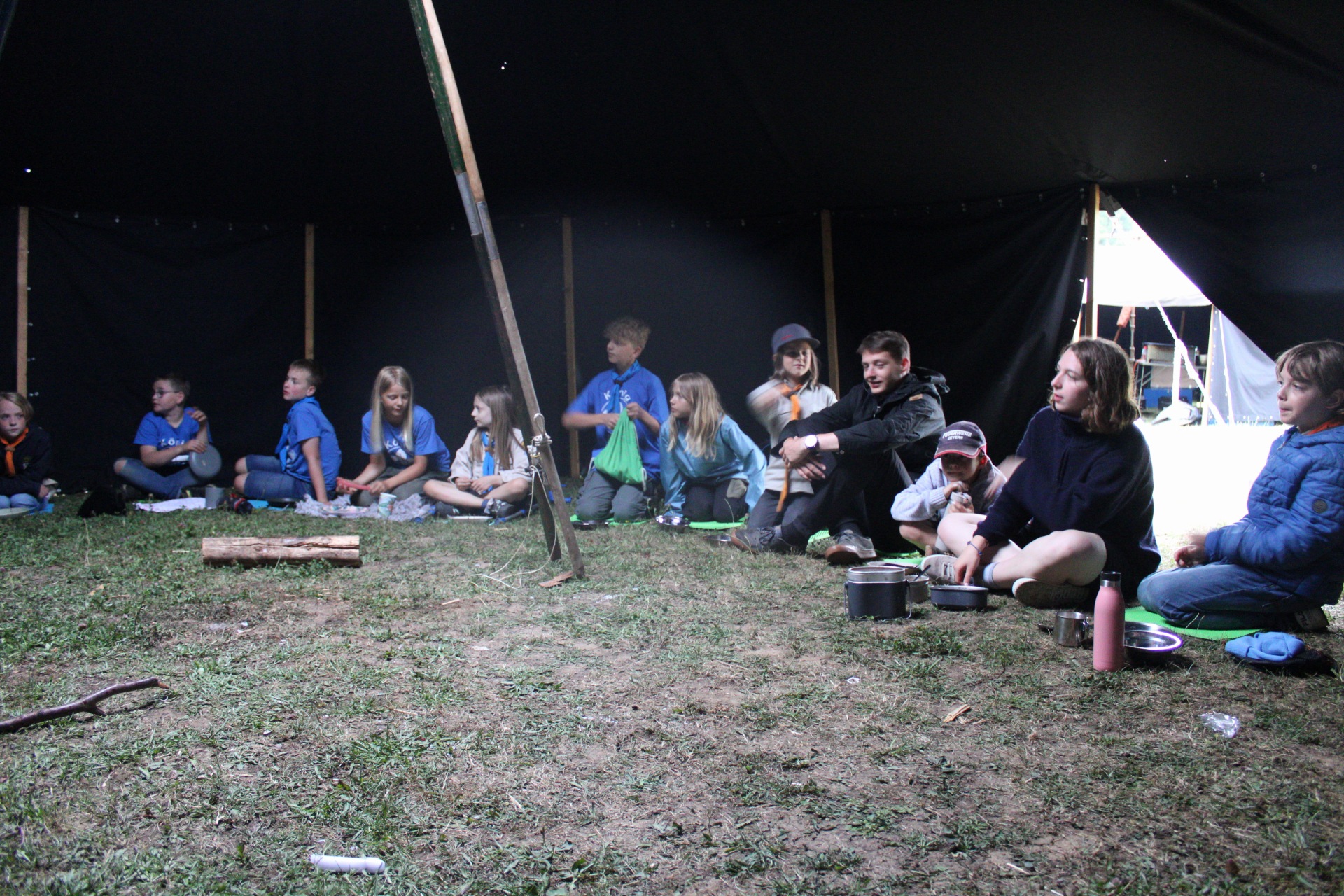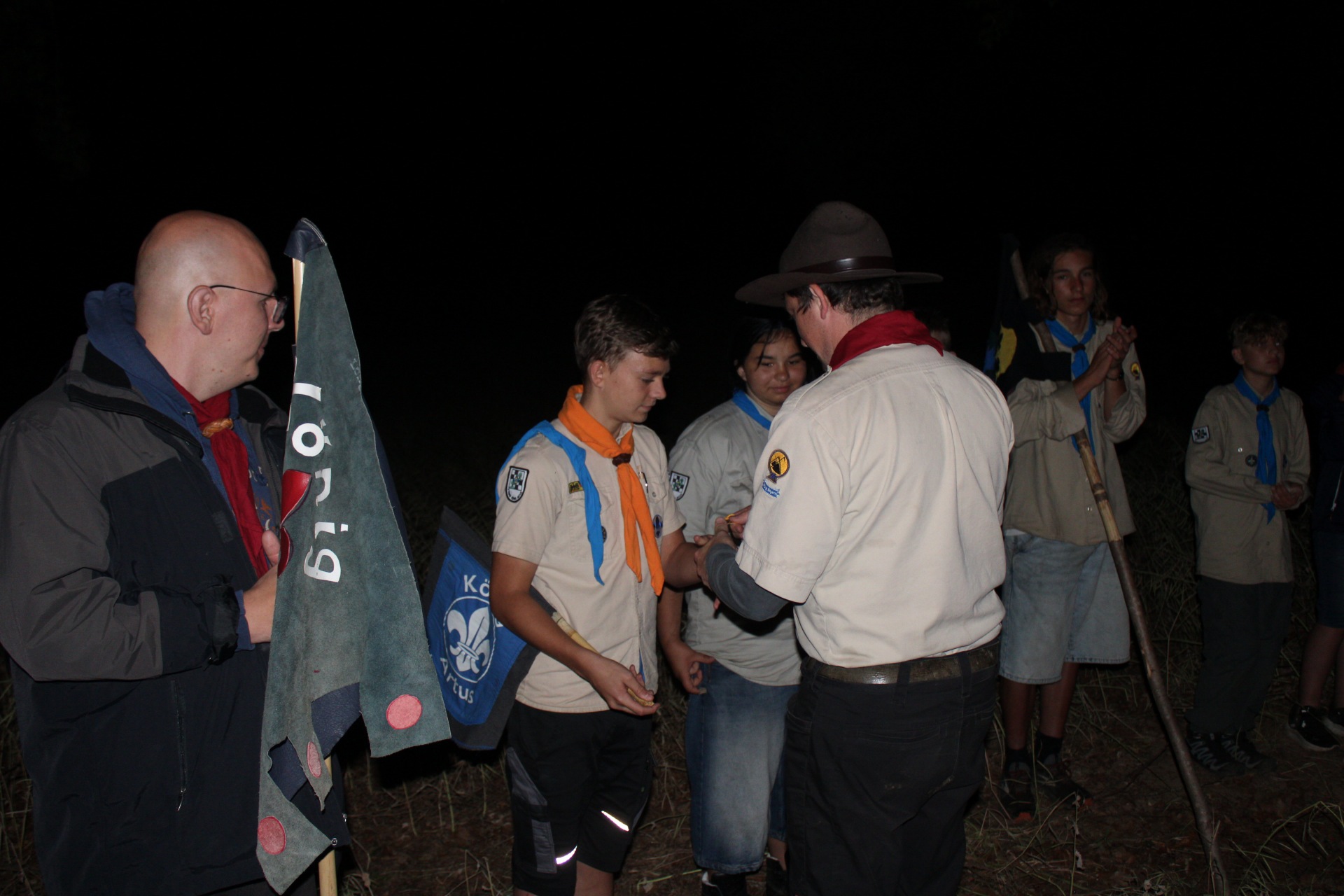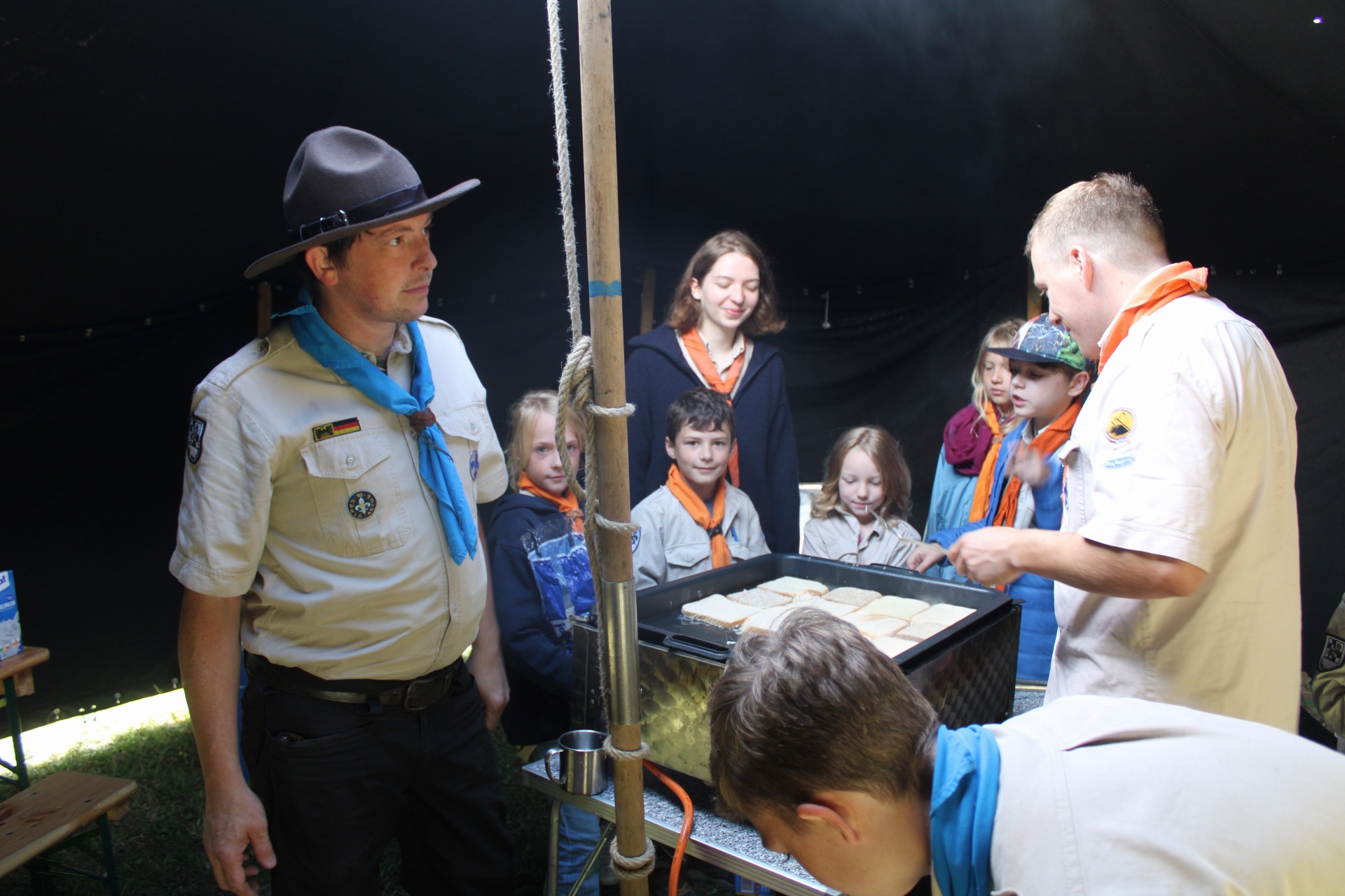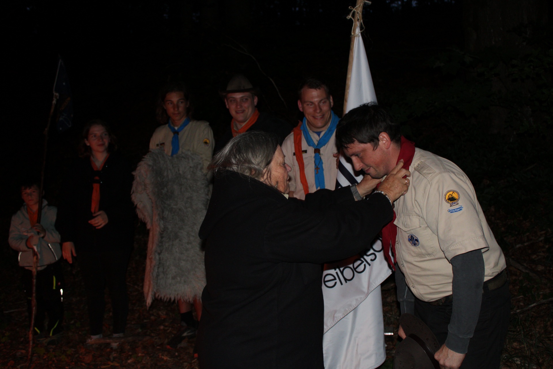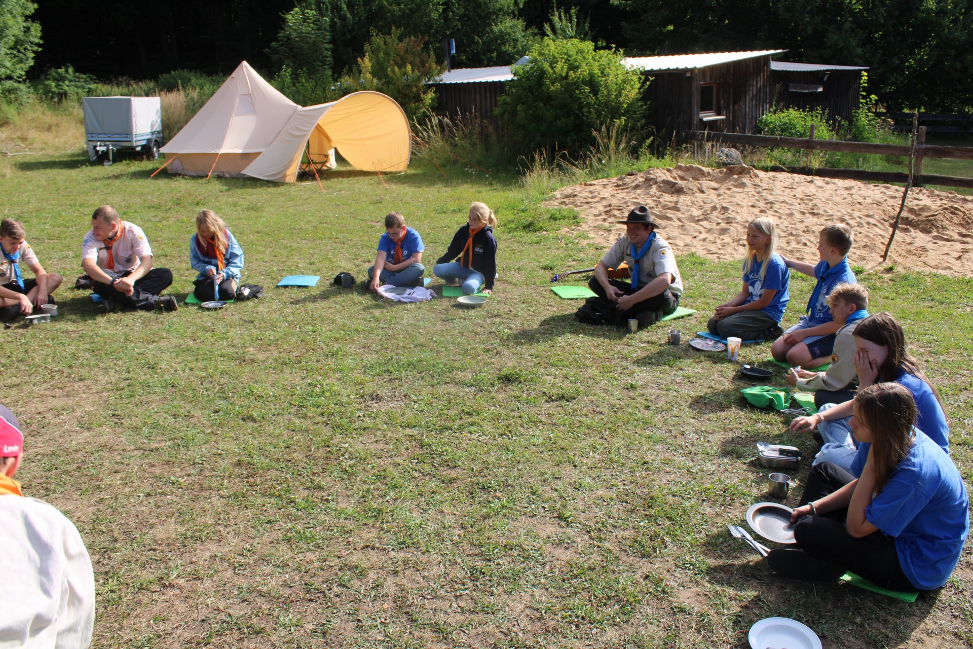 Nun wurde das letzte Abendessen vorbereitet und nachdem gegessen wurde ging es zur Versprechensfeier bei der neu Mitglieder ihr Halstuch bekommen, neue Führer ausgezeichnet und Abzeichen verteilt werden. Nach der Versprechensfeier spielten wir noch eine große Runde Werwolf und danach ging es in den Schlafsack.
