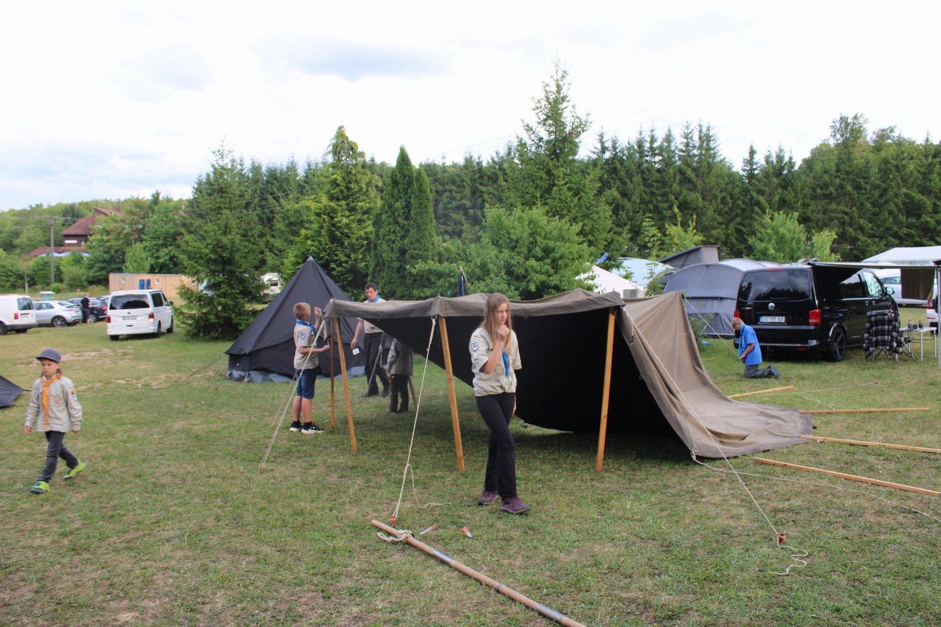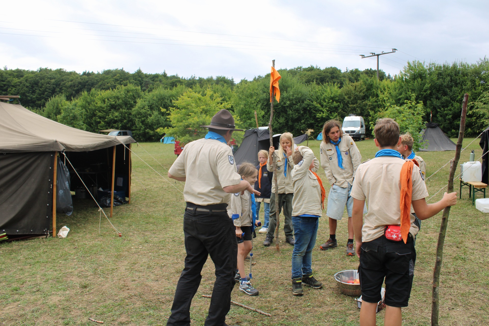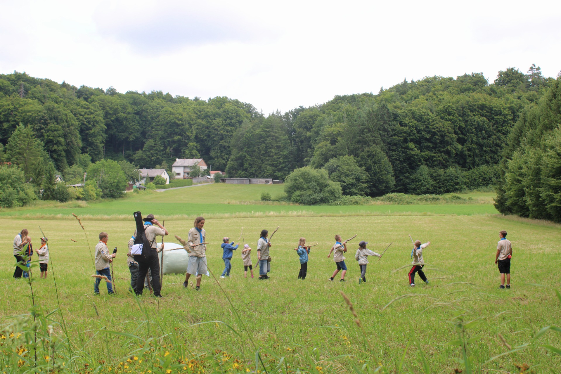 Am Freitag dem 11. Juli trafen wir uns um 16 Uhr am Pfadfinderheim in Waldbuch. Von dort aus fuhren wir nach Betzenstein zu unserem Zeltplatz. Dort angekommen begann der Aufbau der Zelte bei dem die Sipplinge den Aufbau der Jurten koordinierten. Nachdem dieser Abgeschlossen war begann die Küche mit der Vorbereitung des Abendessens wären der Rest in zwei Häuser aufgeteilt wurde, dies hatte den Grund das diese zwei Häuser das gesamte Wochenende über in verschiedenen Disziplinen gegeneinander antreten mussten um herauszufinden welches Haus würdig war die Burgen in der Fränkischen Schweiz halten zu dürfen, nachdem die Häuser also eingeteilt waren hieß es bewaffnen. Nicht um gegeneinander zu kämpfen sonder für die Erste Disziplin die am nächsten morgen stattfinden würde. Für diese Disziplin benötigte jeder einen Speer und nachdem diese fertig geschnitzt waren gab es auch schon Essen. Nach dem Essen noch eine kleine Singerunde und so war der Freitag schonwieder vorbei.