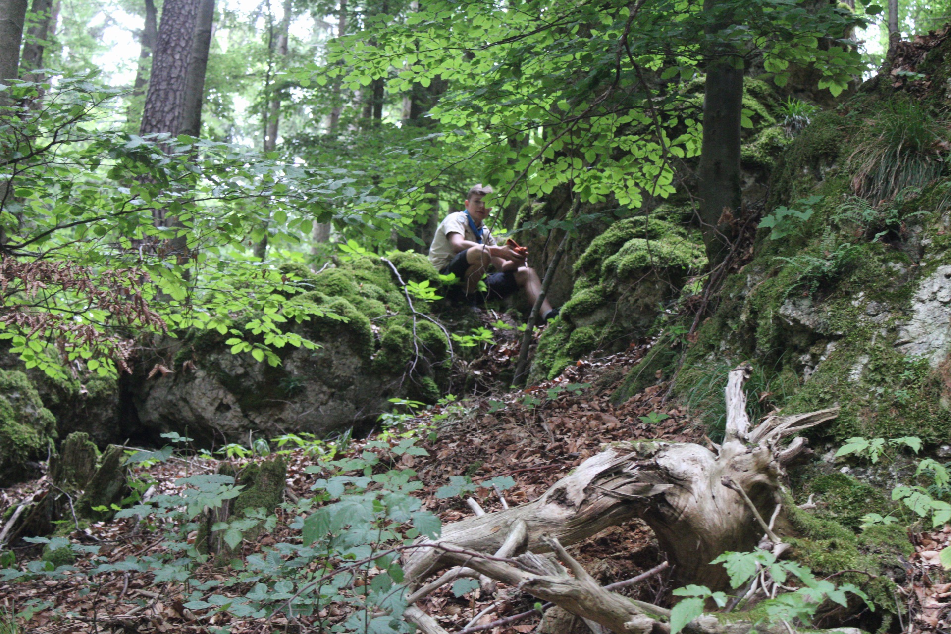 Am nächsten Morgen hieß es bereits früh aufstehen denn vor uns lag ein langer Tag. Nach einem leckeren Frühstück begaben wir uns direkt in Richtung Leienfels doch bevor wir unsere Ämter im Stammesrat neu wählten besichtigten wir noch eine Höhle und spielten das erste Geländespiel bei dem die am Tag zuvor gebauten Speere zum Einsatz kammen. Die erste Disziplin war nämlich Speerweitwurf.