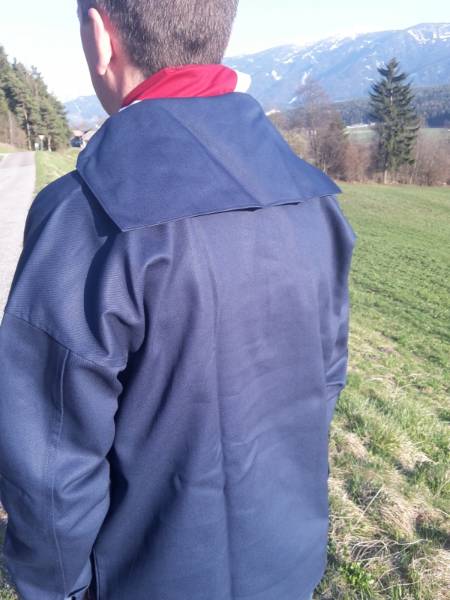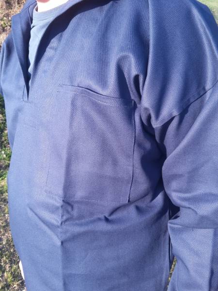 Sommerjuja in der Farbe dunkelblau, 100% Bio-Baumwolle, mit einer Außentasche und großem Kragen.